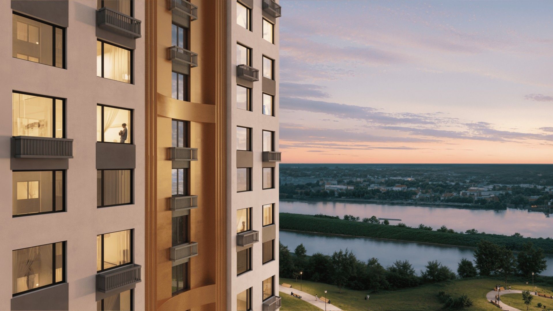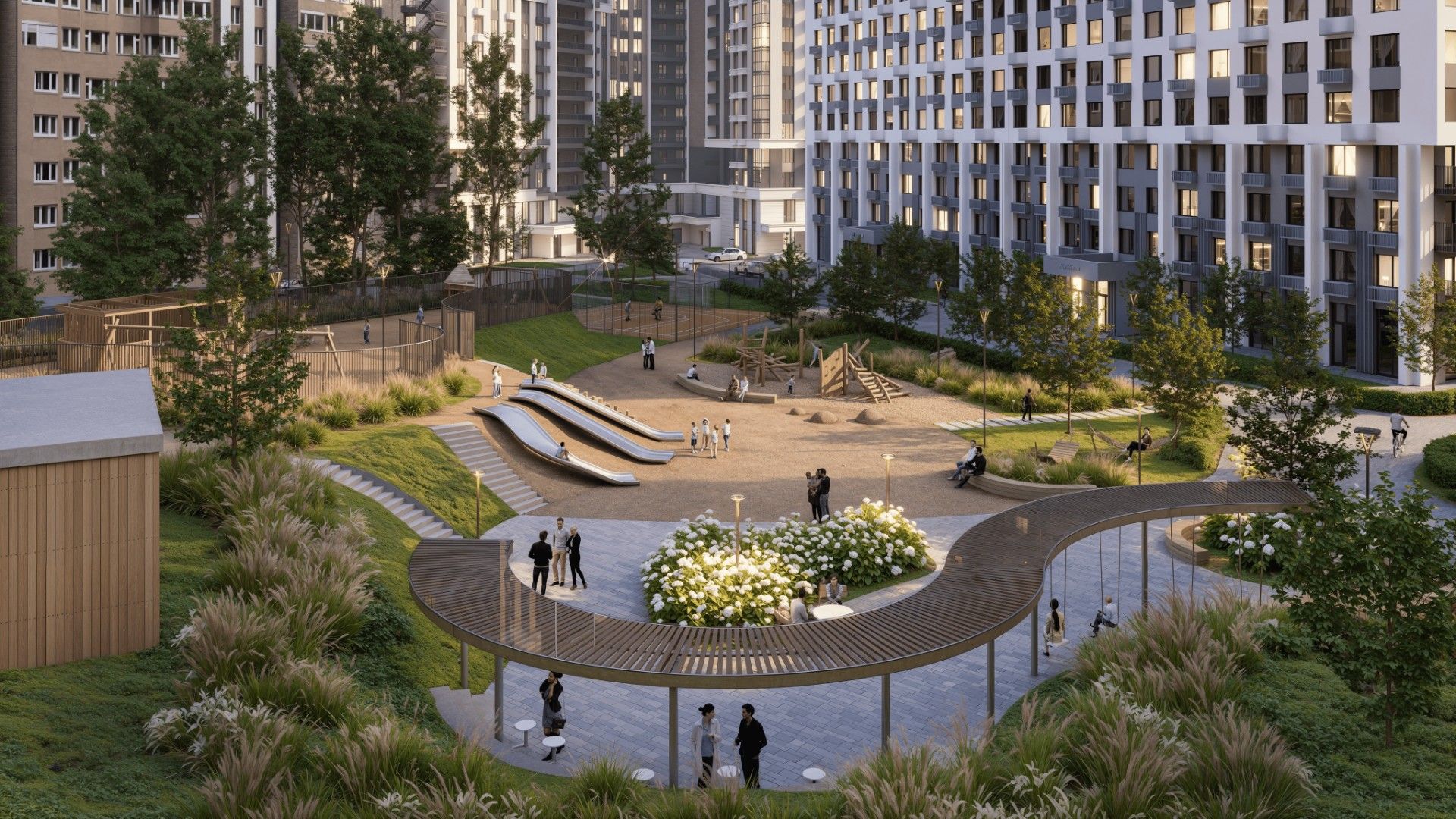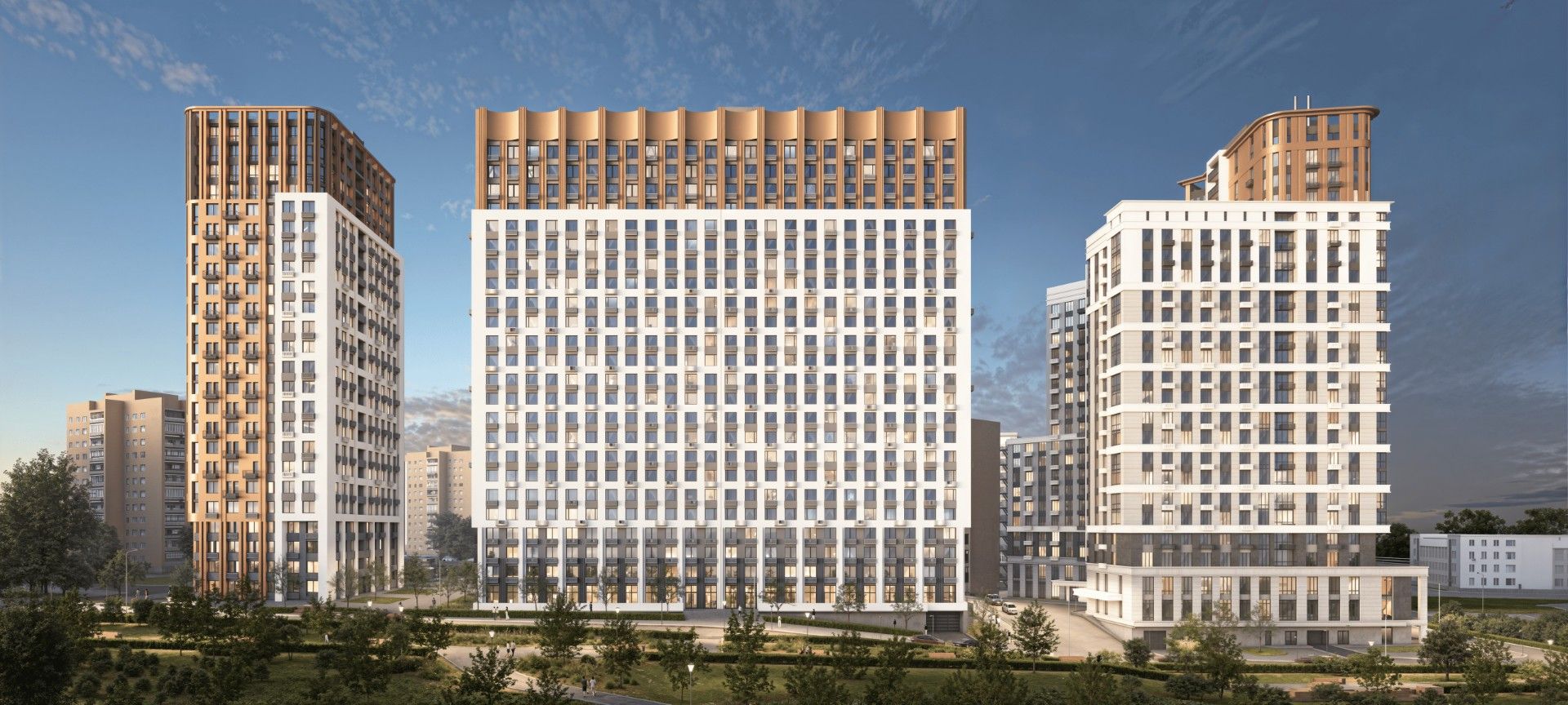 Жилой комплекс бизнес-класса с уникальной архитектурой и ландшафтным дизайном, расположен в шаговой доступности от центра города.