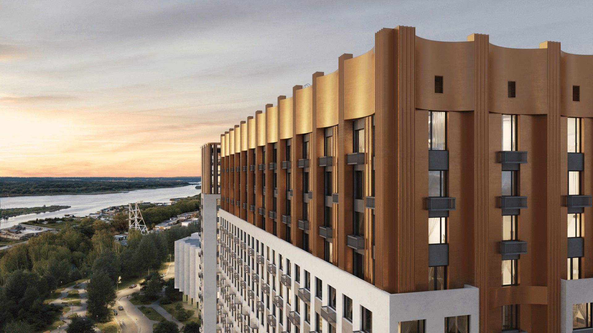 Набережная для жителейДвор без машинЗакрытая территорияЗона для выгула собакДетская зона от Бюро ГоршуноваКвартиры с видом на ВолгуЛифты OtisДизайнерские подъездыКвартиры с террасамиКолясочныеВысота потолков — от 2.8 мПодземный паркингСобственая котельная