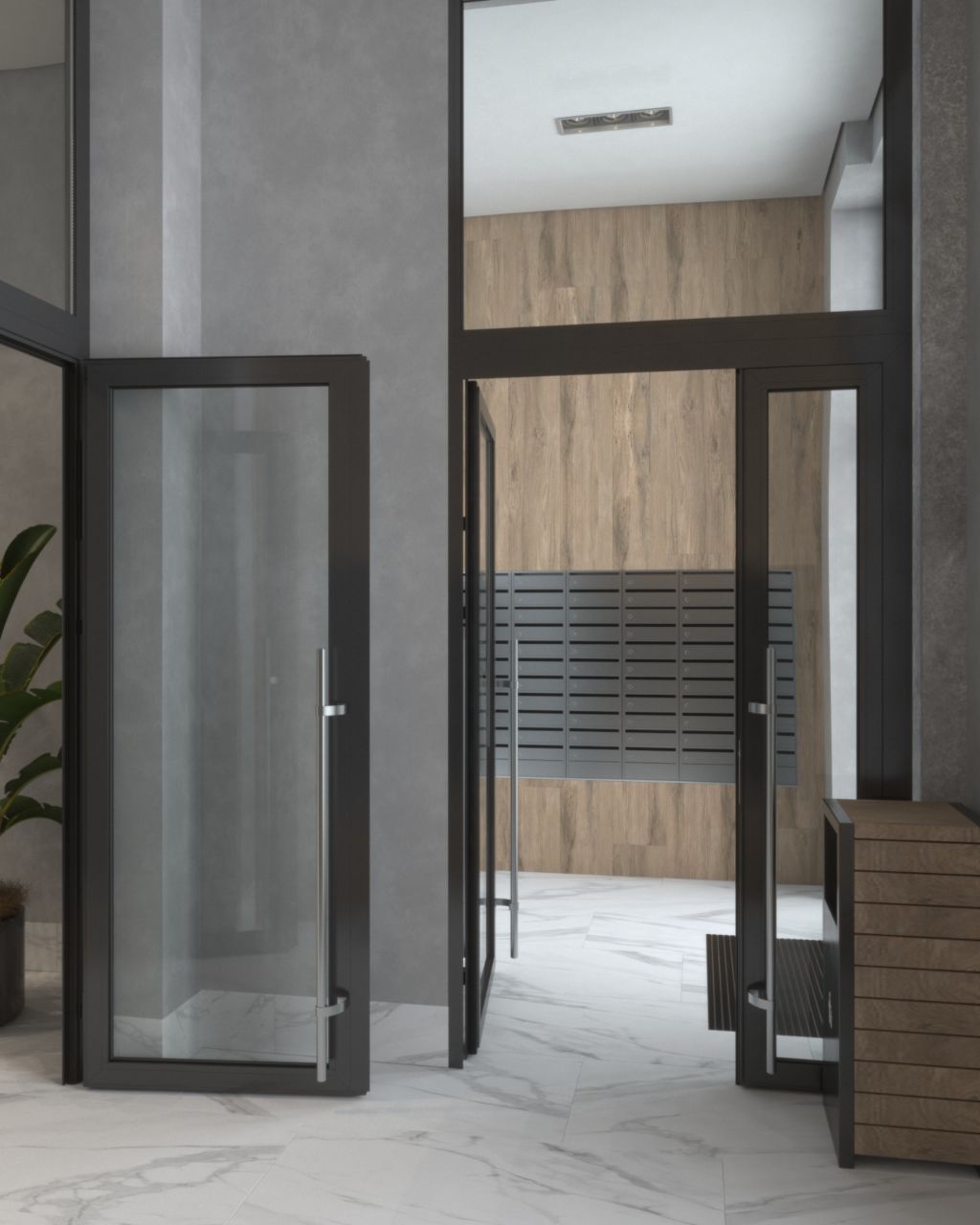 – Зона ресепшена в холле подъезда