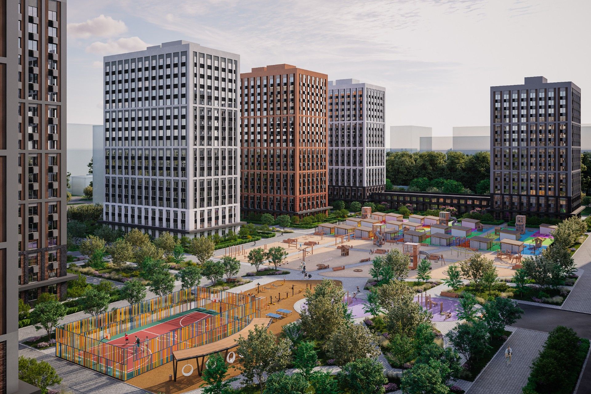 Здесь есть все необходимое для жизни, отдыха и досуга: развитая инфраструктура, зеленые скверы, живописные парки и озеро, детский сад и школа, торговые площади и спортивные центры.
