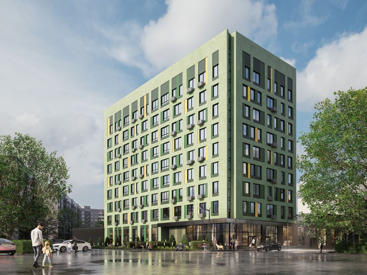 В рамках проекта будет построен одноподъездный жилой дом на 64 квартиры со встроенно-пристроенными помещениями общественного назначения на первом этаже и подземной автостоянкой.