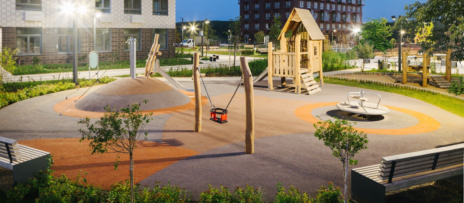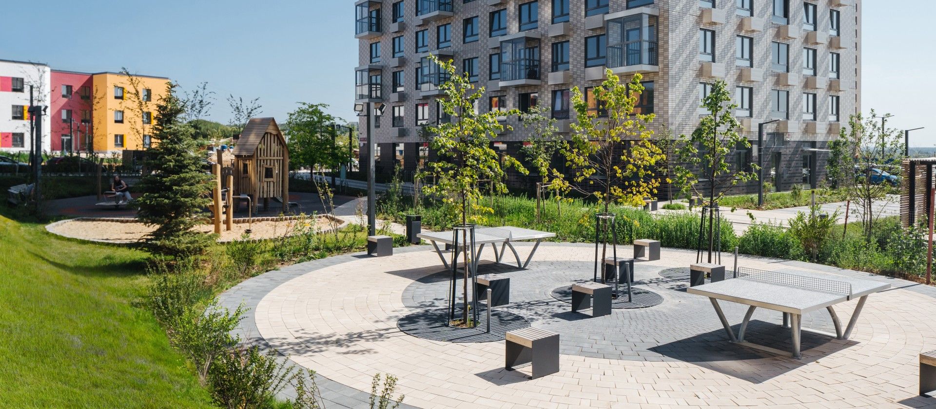 Чтобы жители квартала чувствовали простор и получали больше солнечного света, мы построим дома разной высоты. Во дворах появятся уютные парки с детскими площадками и местами для отдыха — здесь можно поболтать с соседями, почитать в тени или позаниматься йогой. Спортивные площадки мы разместим так, чтобы шум от них не мешал жителям.