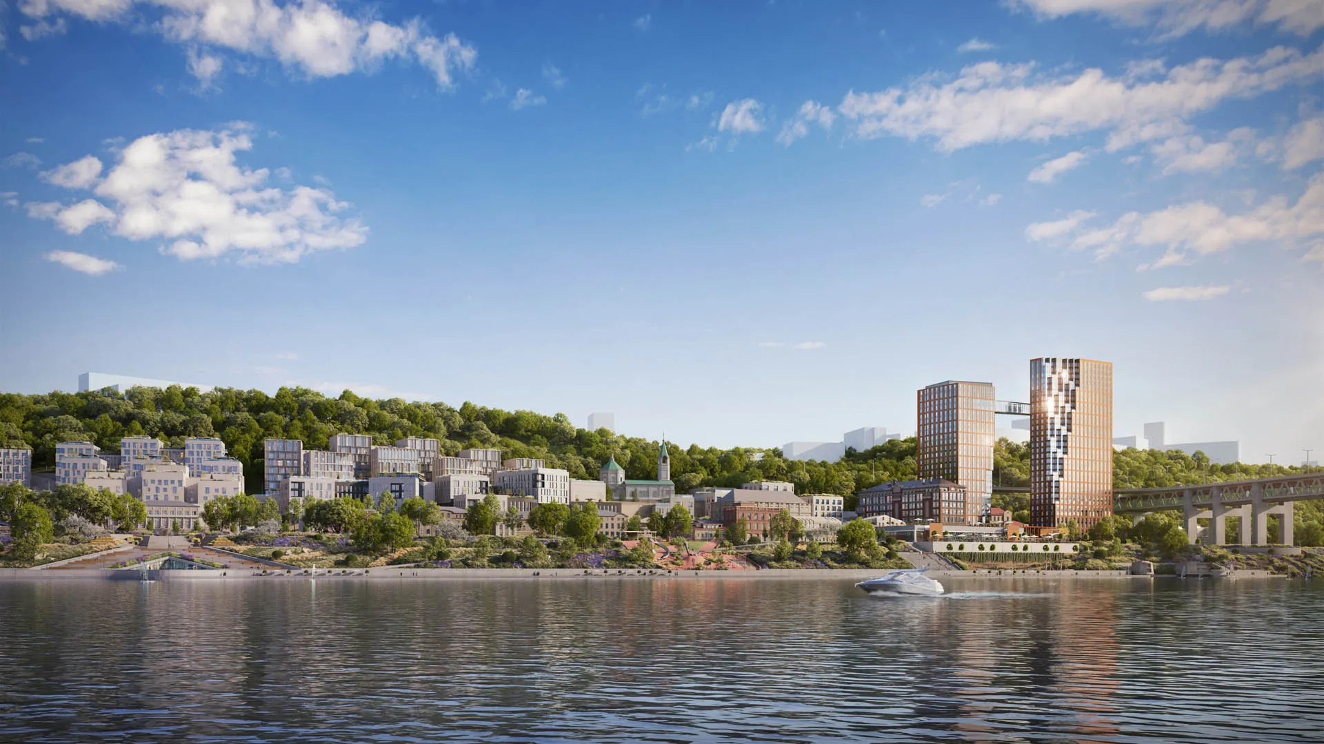 Однако сегодня ситуация кардинально меняется. Концепция развития предполагает создание здесь полноценного современного пространства с жилой застройкой, административными зданиями, гостиницами, социальными объектами и, конечно же, прогулочными зонами вдоль воды.
